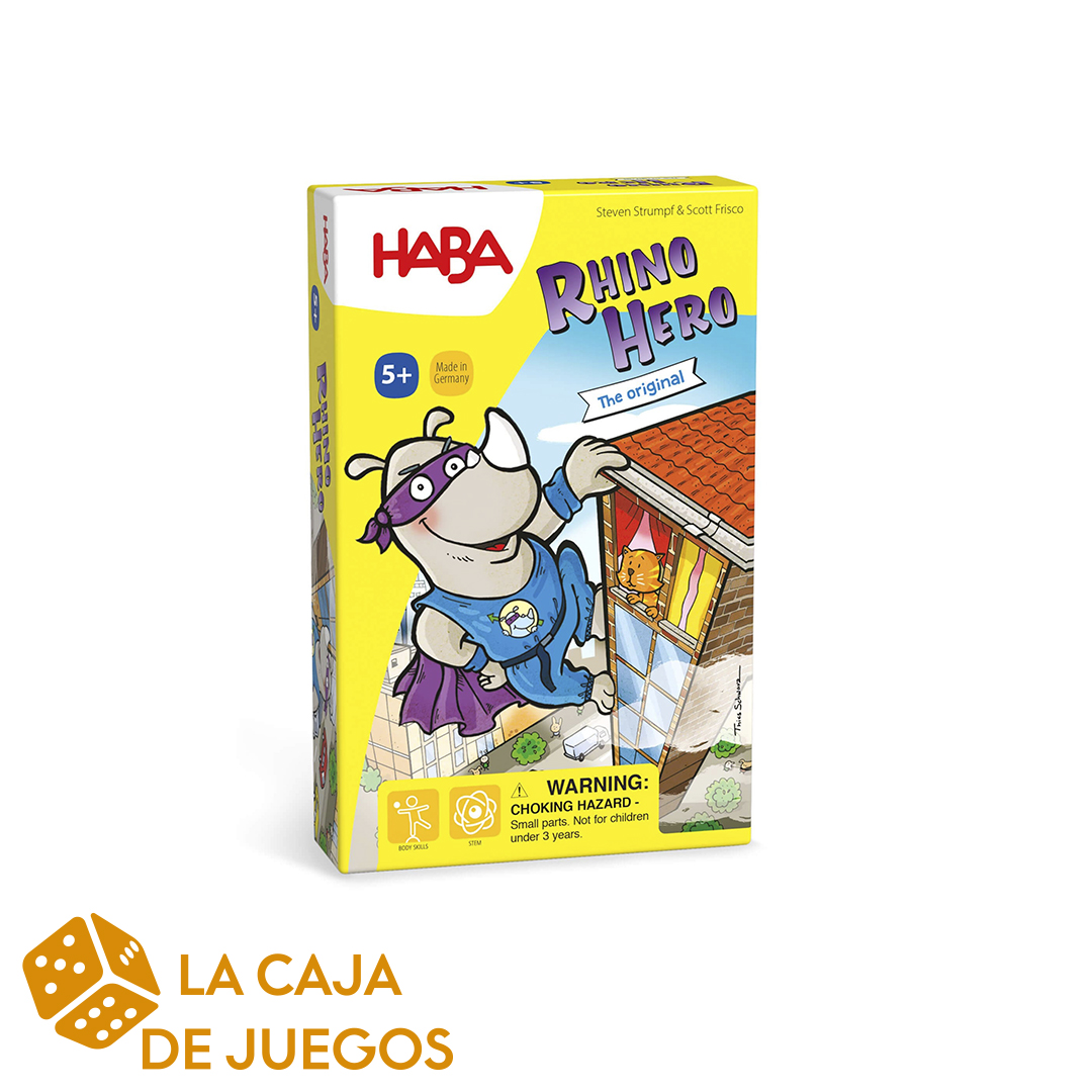• Fácil de aprender: los jugadores se turnan para construir una torre de cartas mientras equilibran al valiente Rhino Hero en la parte superior, con el objetivo de crear la estructura más alta y estable posible en estos juegos de cartas para niños de ritmo rápido.